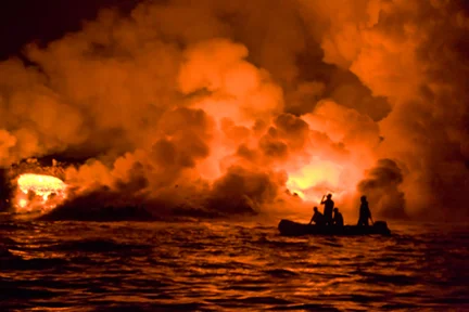 I dipped my hand into the ocean and discovered what felt to be a warm bath as the lava flowed into the ocean. I found out through my research that these flows could disrupt and destroy some of the unique flora and fauna of the area. Dead wildlife was observed in the Pacific Ocean following this volcano's eruption which was its first in four years.