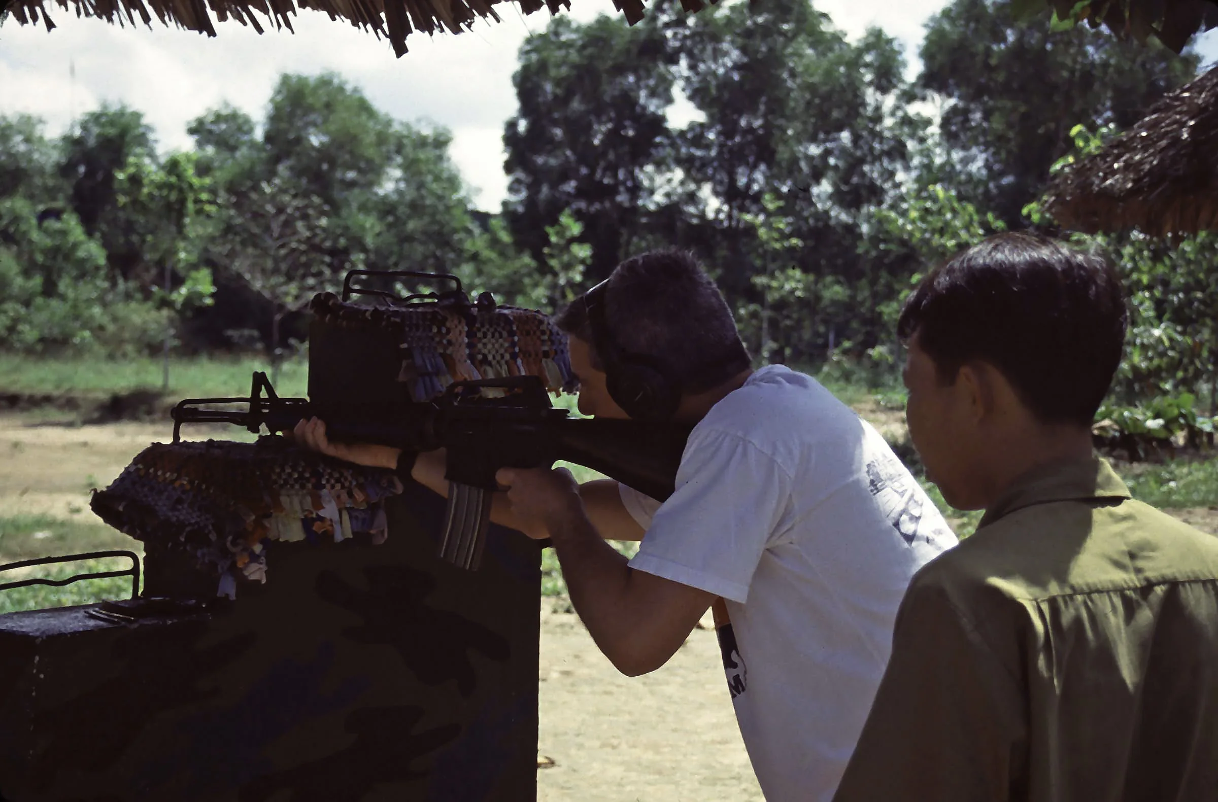 Cliff firing a Vietnam era weapon at the shooting range at the War Memorial Park