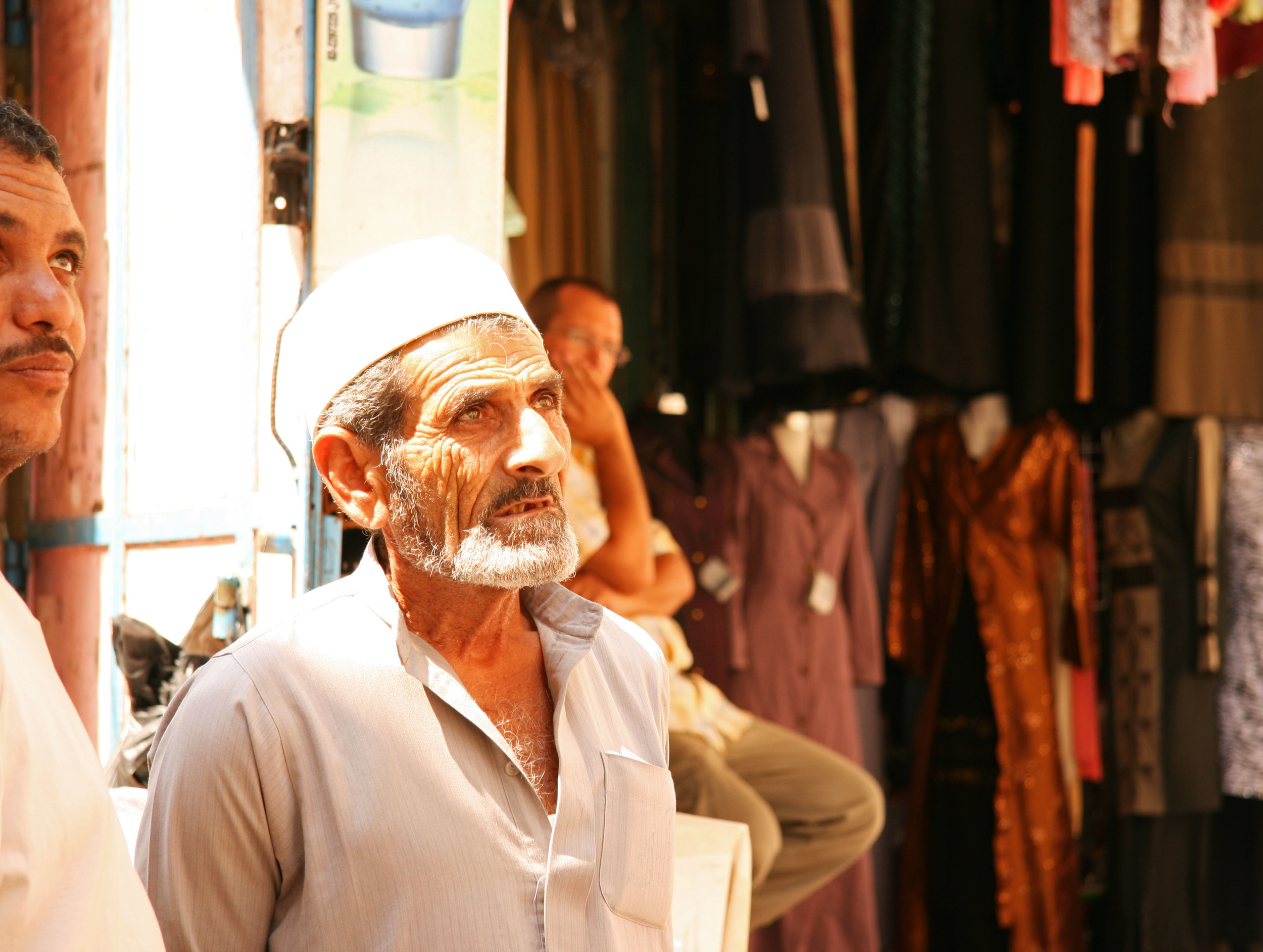 As I reach my saturation level and start to experience sensory overload, I head towards the Damascus gate to exit the Souk. I see two Arab women wearing traditional head scarves known as keffiyeh as they pass me by.
