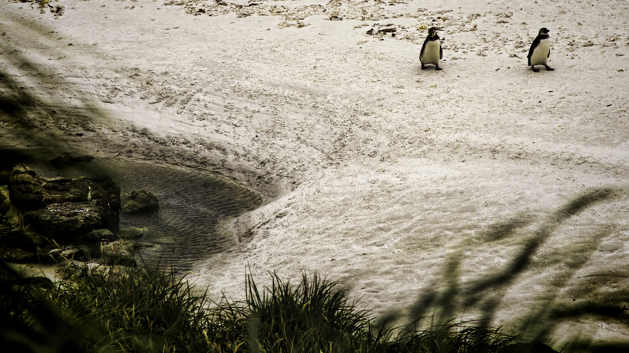As frequently happens, I'm confronted with photographing these Magellanic penguins in the moment. In a short amount of time, they will start moving away from me. There is no time to switch to my long lens. I start snapping away.