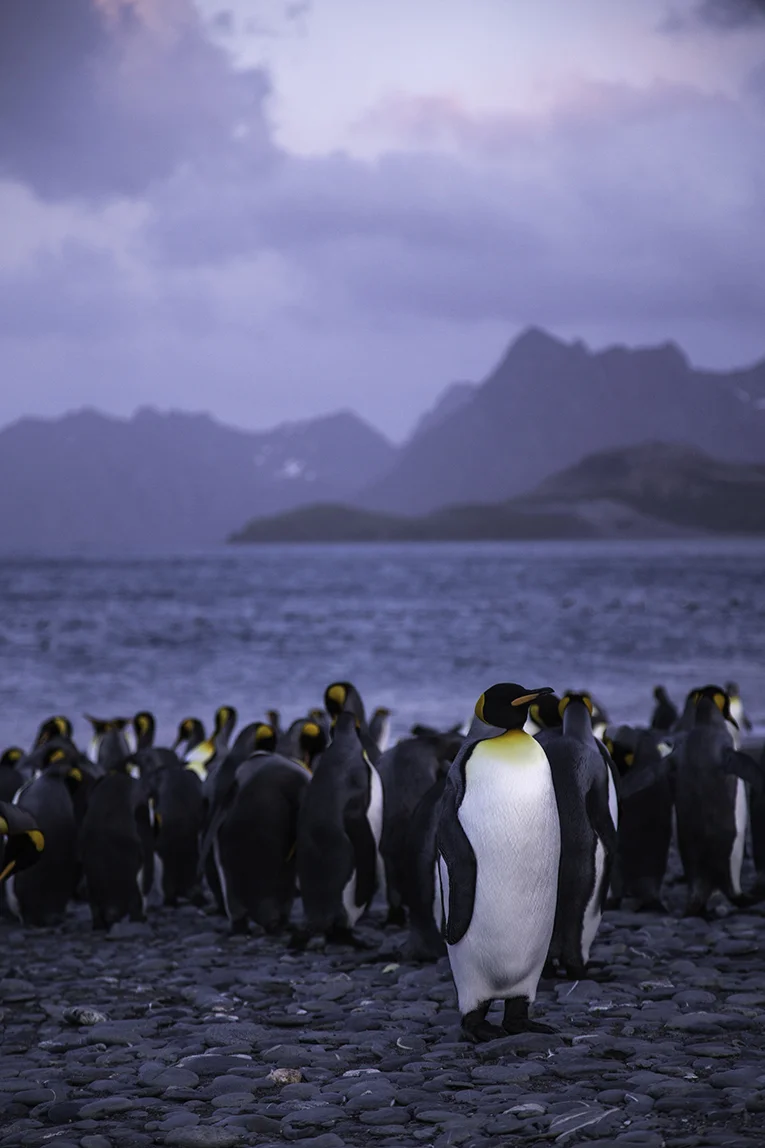 Salisbury Plain is situated on the southern shore of the Bay of Isles, approximately 31 miles from the western tip of South Georgia. Created by the outwash from the retreat of the Grace Glacier, this area evolved to South Georgia's largest parcel of level land. Consequently, the second largest colony of king penguins now occupies this beach with up to an estimated 60,000 breeding pairs present. This number expands to approximately 250,000 individuals during the molt.